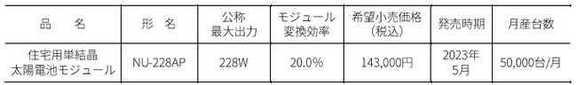 ※3 セル大型化により、モジュールの公称最大動作電流は当社2021年度モデル<NU-259AM>に対して、約21%大電流化。