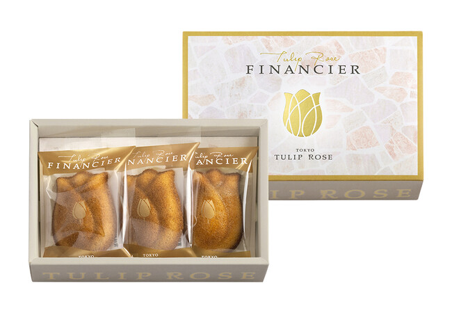 「TOKYOチューリップローズ」から新作ギフトが誕生!きつね色になるまで丁寧に焦がした発酵バターのコクと、金井シェフが選び抜いたアーモンドの旨みをぎゅっと詰め込んだ、自慢のフィナンシェ。慎重に見極めた火加減で、まるで“黄金色のチューリップ”のように焼き上がりました。ひとくち頬張れば、しっとりとした口どけに、アーモンドの贅沢な香りと焦がしバターのコクがジュワっと広がります。金井シェフの情熱で黄金色に花ひらいたチューリップを、ぜひ味わってみて。