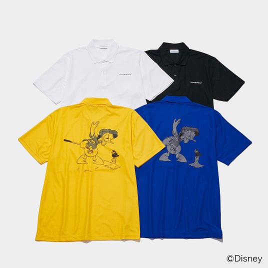 これから使えるポロシャツは、2デザインで各4色登場。鮮やかな原色と定番カラーの展開でバックにはミッキーマウスやドナルドダックをモノトーンでシンプルにグラフィックに取り入れました。ゴルフをプレイするのに快適なシワがつきにくく、乾きやすいドライカノコ素材を採用していて、肌にまとわりつかず、汗冷えしにくい快適な清涼感のある着心地のアイテムです。