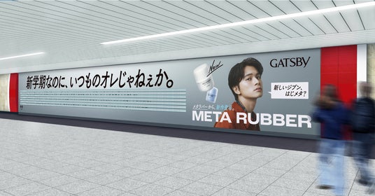メンズコスメブランド「ギャツビー」は、ヘアスタイリングシリーズ「メタラバー」から8月26日に新発売したワックス「エアドライブ・エアデザイン」のプロモーション企画として、新商品のサンプルをお持ち帰りいただける北村匠海さんを起用したピールオフ広告を東京メトロ丸ノ内線新宿駅メトロプロムナードにて掲出いたします。