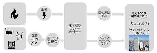 株式会社サンシャインシティ(本社:東京都豊島区 代表取締役社長:脇英美)は、所有・運営する大型複合施設「サンシャインシティ」及び三菱地所株式会社と共同で所有・運営する「サンシャインシティ アネックス」において、当社が電力会社から直接受電(※1)する全電力を2025年4月より再生可能エネルギー由来とします。