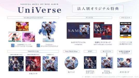 3形態共通特典として、1st Mini Album「UniVerse」に、『Saegusa Akina 1st Solo LIVE "Unity"』のチケット先行抽選シリアルコードを封入!