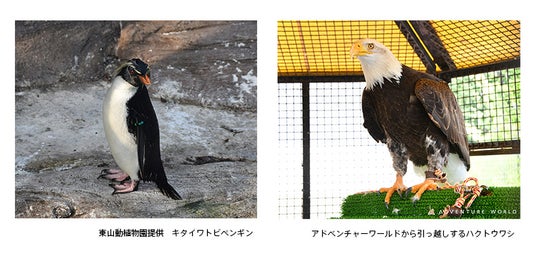 アドベンチャーワールド(和歌山県白浜町)からハクトウワシ(メス)1羽が東山動植物園(愛知県名古屋市)へ引っ越しすることが決まりましたので、お知らせいたします。同時に東山動植物園からキタイワトビペンギン(メス)1羽が当パークの群れに仲間入りし、どちらの種も将来の繁殖を目指してまいります。今後も、動物たちのいのちが未来へとつながっていくよう、取り組みを続けてまいります。