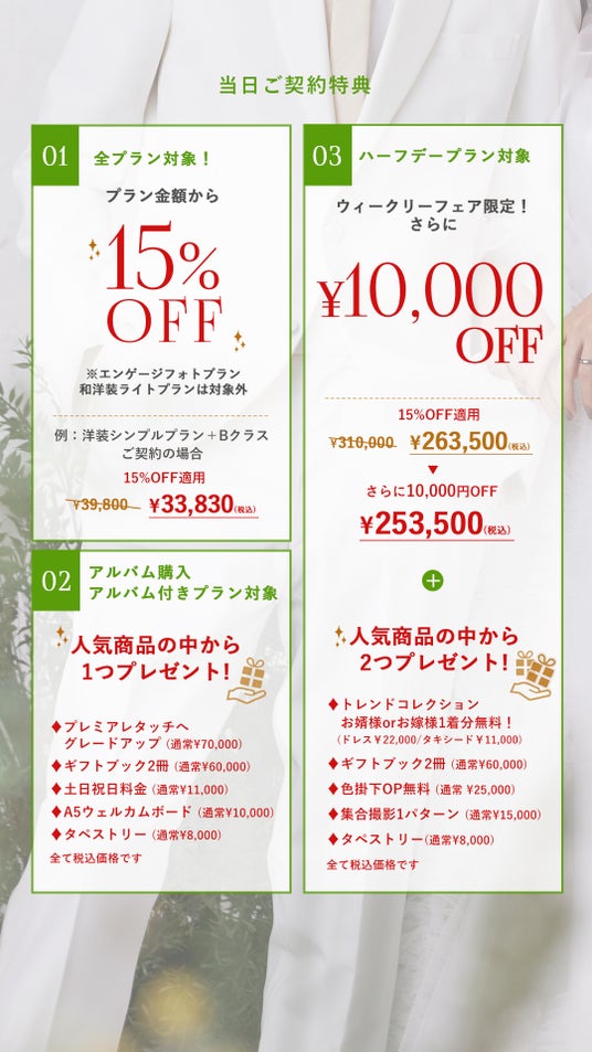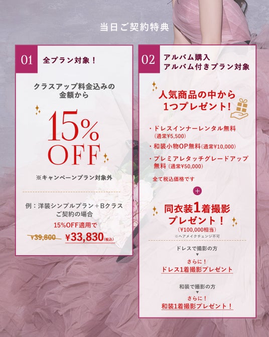 *洋装和装ライトプラン、エンゲージフォトプランは対象外