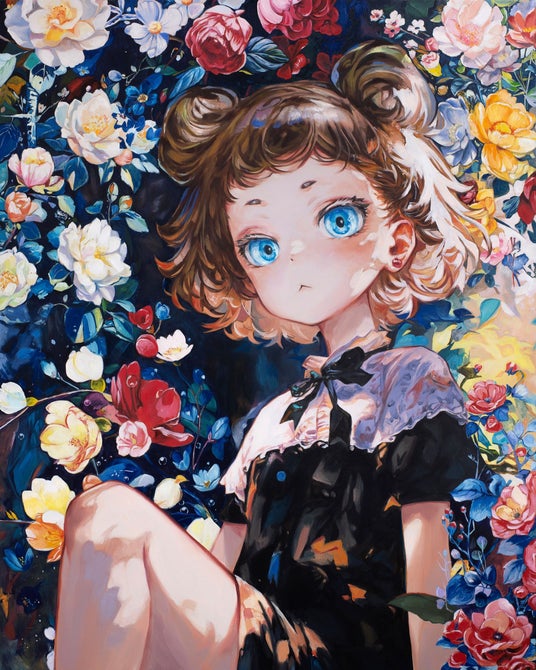 韓国・ソウルを拠点に活動するアーティストJade Kimは、妻の幼少期をモチーフにした"MIN"というキャラクターを絵画や彫刻で表現しています。妻との会話や彼女が見た夢や好きなもの、社会問題などからインスピレーションを受け制作を続けています。Jade Kimの作品には、人間関係の調和を表す要素として色とりどりの花が描かれています。そこには花を直感的に美しいと感じるように、自分の作品も鑑賞者にとって良い感情を引き出すものであってほしいという作家の願いが込められています。
