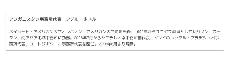 本報告会では、20年来続く日本政府との定期政策協議に来日するユニセフ事務局次長はじめ、本部や中東・北アフリカ地域事務所、そしてアフガニスタンの現地事務所で人道支援活動の指揮を執る幹部職員が、世界各地でユニセフが取り組む人道支援活動の「今」を伝え、「未来」を語ります。