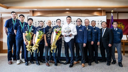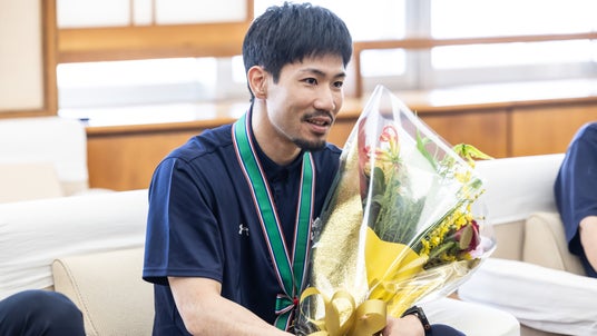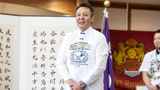 激闘を終えたばかりの中、沖縄市役所までお越しいただきありがとうございます。天皇杯決勝の会場に伺った際に、キングスファンが過半を占めているのを目の当たりにし、その人気ぶりに改めて驚かされました。キングスは最後までフェアプレー精神を貫き、天皇杯にかける強い執念を感じさせる素晴らしい試合でした。皆さまのおかげで、本当に幸せな気持ちでいっぱいです。沖縄の皆さまも、きっと同じ気持ちで喜んでいることと思います。