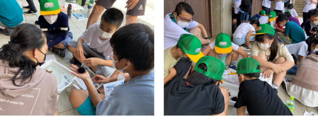 竹野では、生物多様性が育まれる環境があったからこそ、たくさんのサザエが収穫でき、サザエご飯を作る文化が形成されてきたことや地域特有の収穫方法である「磯見漁」について学びました。さらに、調理方法として竹野地域ではサザエを石で叩き割るということで、子どもたちも実際に体験しました。調理方法含め竹野の食文化を知った子どもたちの中には「帰って友達に教えてあげたい、そうすることでこの文化を守っていけたら嬉しい」と語る子もいれば、「この調理方法は臭すぎる」と嘆く子もいました。