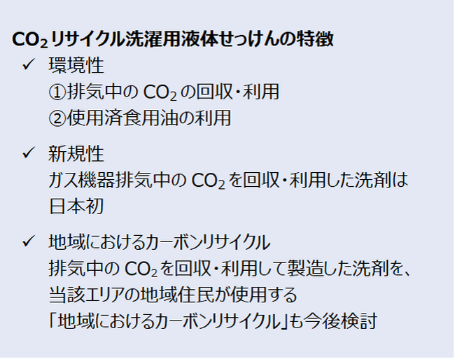 ・ガス機器排気中のCO2を吸収した炭酸塩(*3)を使用した「CO2リサイクル洗濯用液体せっけん」の試供品の配布