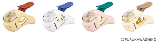 針なしステープラー<ハリナックス>(コンパクトアルファ)古川紙工コラボ限定柄 (左から)「ねこしょくぱん」、「ハシビロコウぷりん」、「うさぎショートケーキ」、「しろくまホットケーキ」