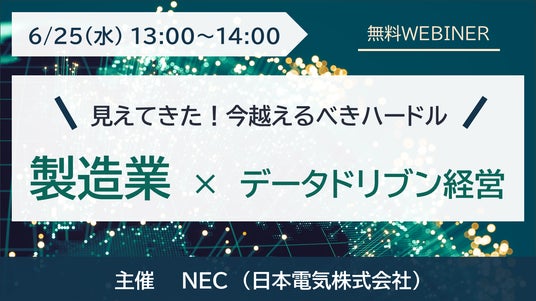 NECは、2025年6月25日(水)に製造業に基づく効果的なデータドリブン経営の進め方に関する無料のウェブセミナーを開催します。
