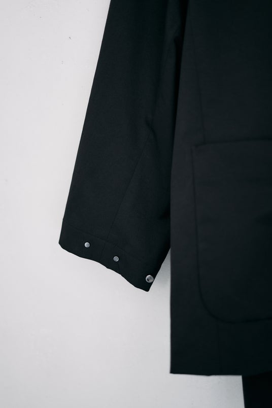 生地にはポリエステルタスラン糸を使用、撥水とストレッチの嬉しい機能を備えており、今回もテック過ぎないコットンライクな質感に。カラーはNAVYとBLACKの2色となります。