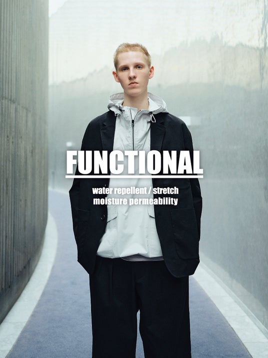 今回は、袖のスナップボタンや裏地の大容量ポケットなど、機能性要素を存分に取り入れた「FUNCTIONAL WIDE JACKET」、日常使いで万能なピンタック入りのワイドストレートシルエットに仕上げた「FUNCTIONAL WIDE PANTS」、2タックを加えたスーパーワイドな存在感の際立つシルエットに仕上げた「FUNCTIONAL WIDE SUPER PANTS」の3アイテムをリリースいたします。