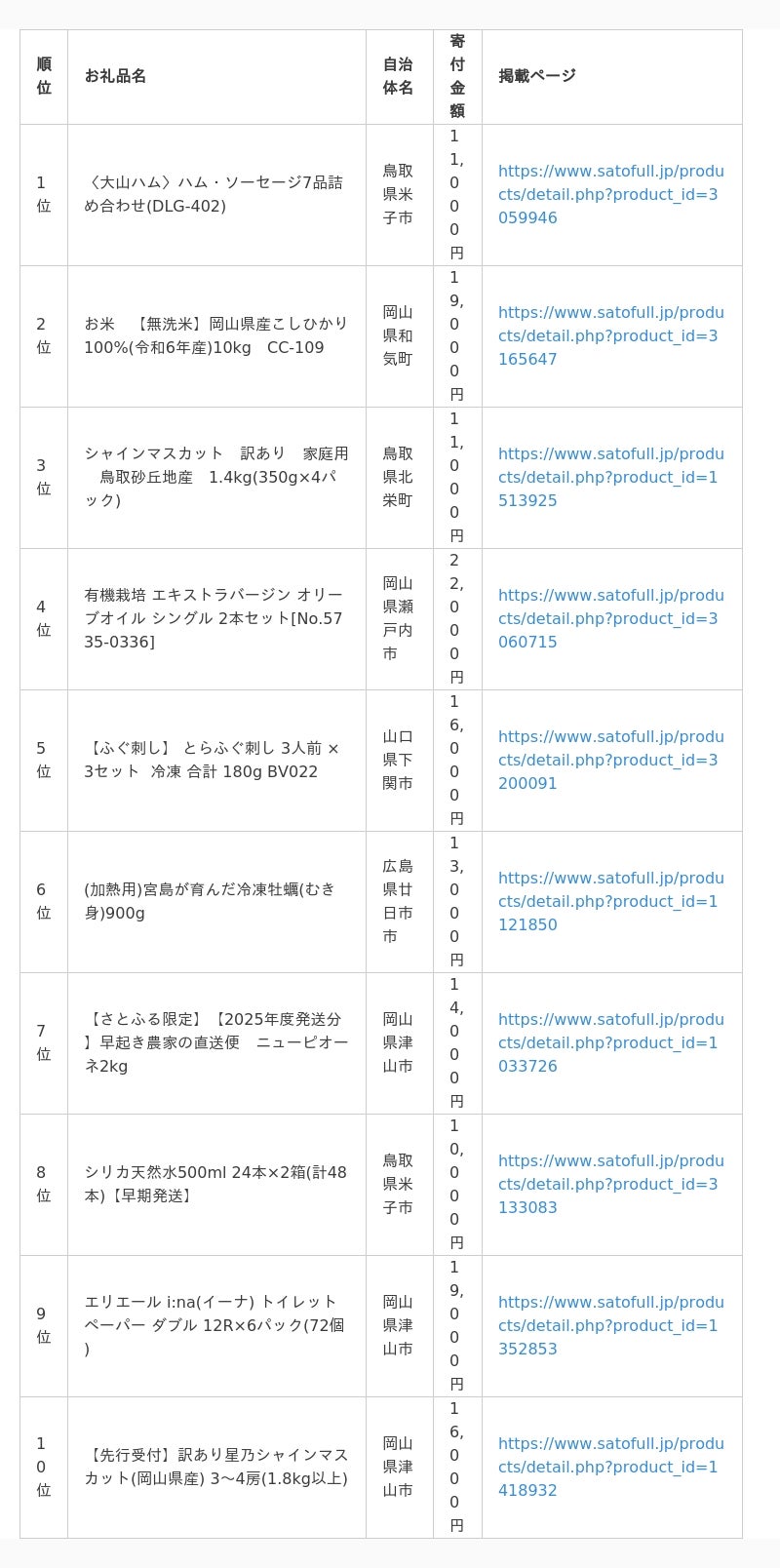 ■<中国地方版>2024年ふるさと納税人気お礼品ランキング(確定)