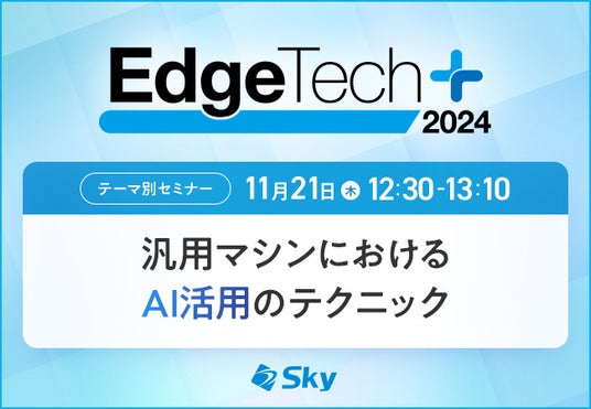 Sky株式会社は、パシフィコ横浜で開催される“AI / 生成AIで加速する事業変革と産業DX”に関する総合展示会「EdgeTech+ 2024」にて、11月21日(木)に「汎用マシンにおけるAI活用のテクニック」と題したセミナーを実施いたします。