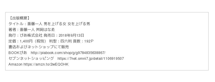 9月13日、斎藤一人 舛岡はなゑ『斎藤一人 男を上げる女 女を上げる男』がぴあ株式会社より発売となりました。