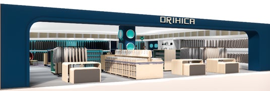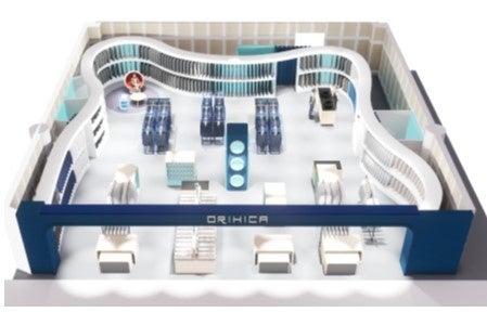 団塊世代には懐かしく、Z世代には新しく感じるテーマ「レトロフューチャー」を表現するべく、大胆な曲面や円を店内に展開し、均質化された什器や店舗内に「遊び」と「リズム」をプラス。店舗の奥へと誘う「奥行き感」と、“オリヒカブルー”に加えて同色系のグラデーション色を取り入れた「新しいカラースキーム」で、ブランドイメージの刷新と差別化を図ってまいります。