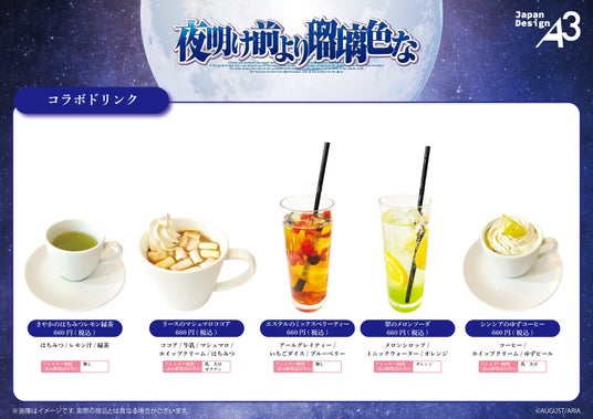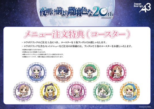 20周年記念カフェでコラボメニューを注文&コースターをゲットしつつ、新作グッズを眺めながら『夜明け前より瑠璃色な』の新しい思い出を作ってみませんか?