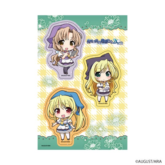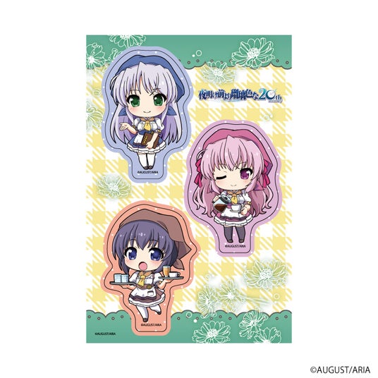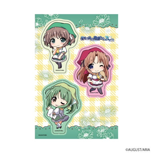 キャラクターたちの全身を描いた縦横最大15cmのアクリルスタンド。公式描き下ろしイラストをじっくり鑑賞するほか、菜月が持っているカーネーションなど20周年をお祝いする花にもぜひご注目!