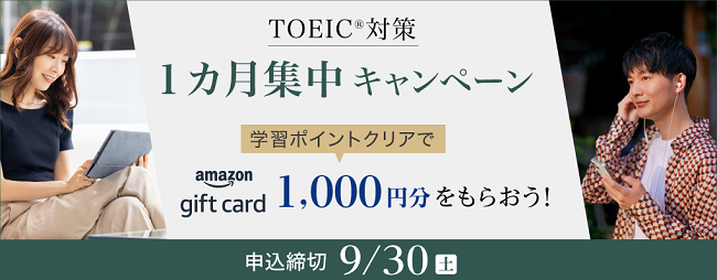 講座開発担当者が1カ月で必要な学習を分析して、スムーズにステップアップできるプランを作成しましたので、無理なく学習を続けていけます。ぜひこのキャンペーンを利用して、効率的にスコアアップをめざしましょう。