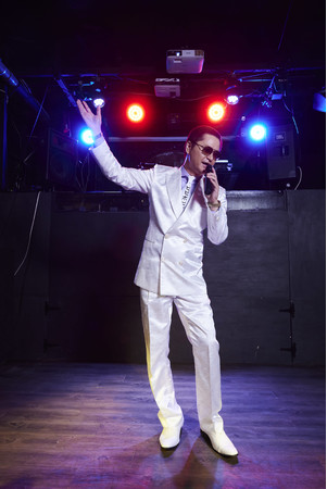 笑撃のデビュー作「六本木~GIROPPON~」でポッポフィーバーを巻き起こしてから14年。当時と変わらぬおなじみのパンチパーマにサングラス、白いスーツのいで立ちで登場。「ご無沙汰しております。生きてますよ!」と集まった取材陣へ挨拶。デビュー曲であり大ヒット曲の「六本木~GIROPPON~」、新曲「ピピポ体操」「ありがとさん」を披露した
