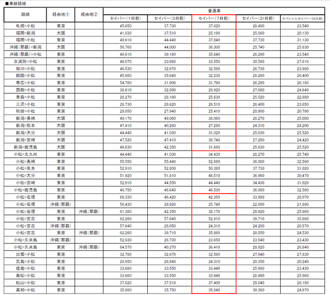 ご搭乗日7日前まで、お得にお買い求めいただける運賃を新たに追加しました。詳細は以下をご覧ください。