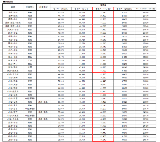 ・東京(羽田)=小松、小松=沖縄(那覇)