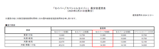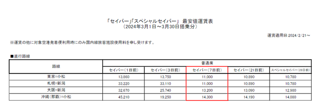 3月ご搭乗分対象運賃「応援セイバー」の設定
