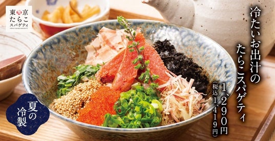 はじめて出逢う13種類の進化系たらこスパゲティを堪能できる、たらこスパゲティ専門店「東京たらこスパゲティ」で4人に1人が選ぶ夏の風物詩「冷製お出汁スパゲティシリーズ」第2弾として「冷たいお出汁のたらこスパゲティ」を2024年7月10日(水)より期間限定で販売を開始いたします。
