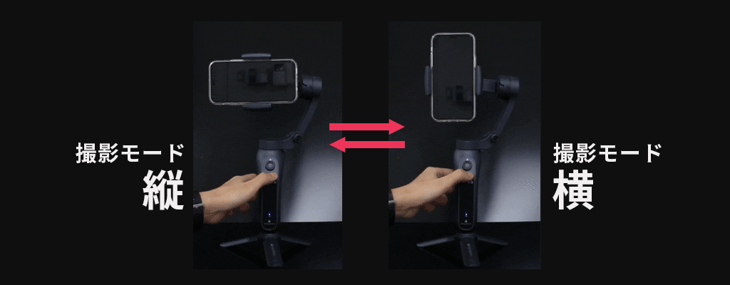 電源/ファンクションボタンを1度押すと撮影モードの縦・横を切り替えることができます。