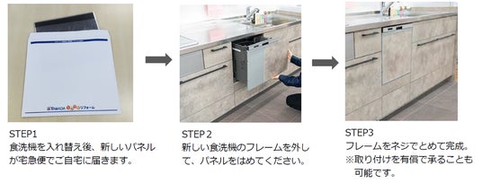 Fit Colorプランはお客様のキッチンに合ったパネルをオーダーメイドで作成します。カラーはもちろん、木目、鏡面、マットなど多彩なデザインや質感に対応できるので、リフォーム前のデザインを維持したまま新しい食洗機へと取り替えることが可能です。