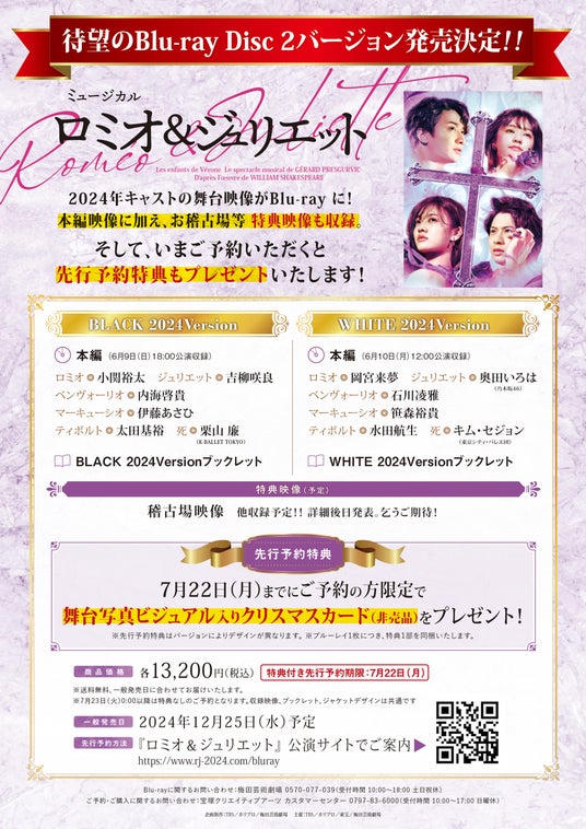 ミュージカル『ロミオ&ジュリエット』2024年公演版待望のBlu-ray Disc2バージョンが発売決定!先行予約は7月3日(水)開始予定。