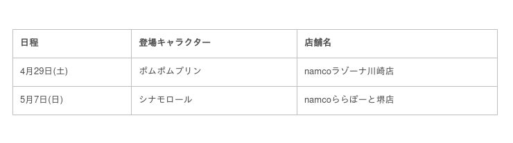 キャンペーンの開催を記念して、namcoラゾーナ川崎店とnamcoららぽーと堺店でキャラクターグリーティングイベントを開催します。詳細は後日バンダイナムコアミューズメント公式Twitterで発表します。
