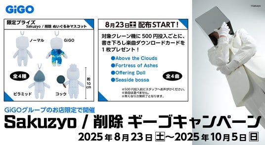 株式会社GENDA GiGO Entertainment(本社:東京都港区 代表取締役社長:二宮 一浩 以下「当社」)は2025年8月23日(土)より、アートコアを中心に、クラシック音楽からテクノまで幅広いジャンルの楽曲を制作している人気アーティスト「Sakuzyo/削除」とのコラボキャンペーンを開催いたします。