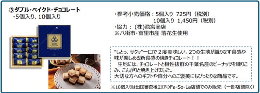 ※ダブル・ベイクド・チョコレート(5個入り・10個入り)、ダブル・ベイクド・チョコレート抹茶については、Fa-So-La店舗以外で以下の店舗でも販売しております。