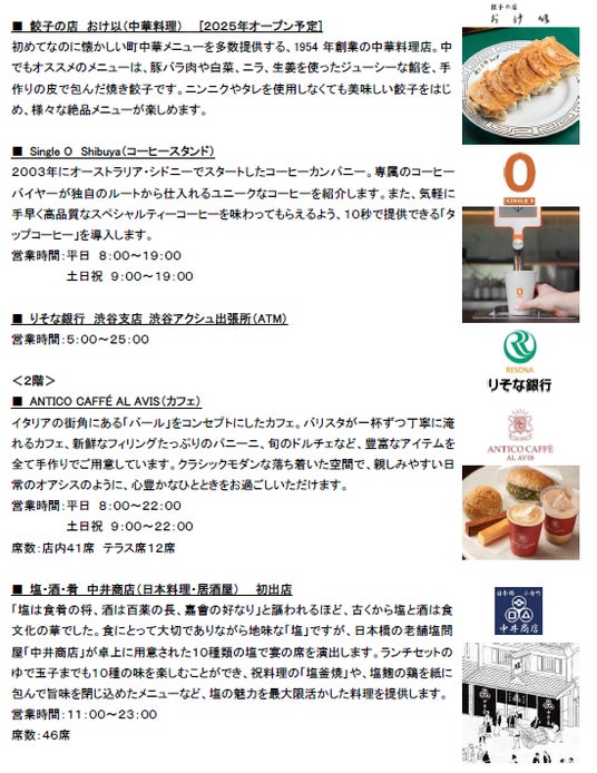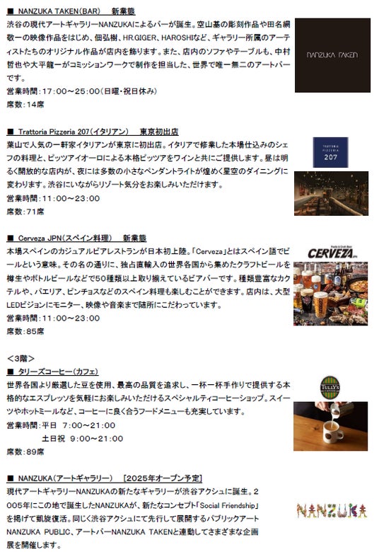 渋谷二丁目17地区市街地再開発組合とその参加組合員である東急株式会社は、渋谷駅東口エリアに誕生する大型複合施設「渋谷アクシュ(SHIBUYA AXSH)(以下、本施設)」の開業日を、2024年7月8日(月)に決定しました。本施設は、1-4階は商業施設、5-23階はオフィスで構成されています。今般、開業日決定に伴い、1-4階の商業施設に順次オープンする15テナントとパブリックアートの第1弾についてお知らせします。