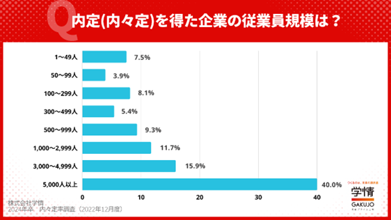 (3)内々定企業の従業員規模は、“5,000人以上”が「40.0%」で最多回答