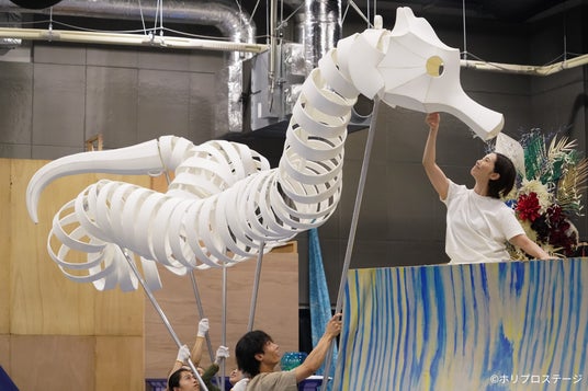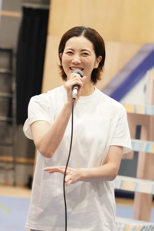開幕まで約2週間を迎え、都内スタジオにて公開稽古が実施され、キャストのパフォーマンスや約1000人の希望者から選ばれた20名がこども記者との質疑応答などがおこなわれた。