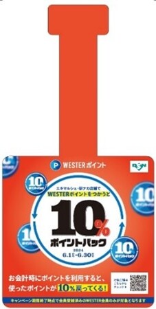 WESTERポイントをつかってお買い物していただいた方に、ご利用ポイント数10%分のWESTERポイントが後日戻ってきます。