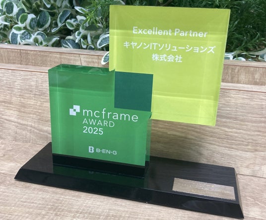 キヤノンマーケティングジャパングループのキヤノンITソリューションズ株式会社(本社:東京都港区、代表取締役社長:金澤 明、以下キヤノンITS)は、ビジネスエンジニアリング株式会社(本社:東京都千代田区、代表取締役社長:羽田 雅一、以下ビジネスエンジニアリング)が主催している、製造業向けの生産/販売/原価/PLMなどのパッケージシリーズ「mcframe」ビジネスへの貢献がめざましいパートナー企業を表彰するmcframe Award 2025において、「Excellent Partner」を受賞しました。