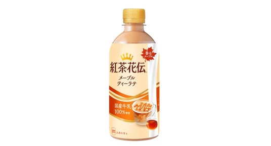 「紅茶花伝 メープルティーラテ」は、100%手摘みセイロン茶葉から抽出された香り高い紅茶に、100%国産牛乳を使用した贅沢な味わいと、ほんのり香ばしいメープルの味わいが合わさることで、「紅茶花伝」ならではの秋らしいティーラテとなっています。