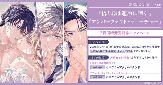 ホーリンラブブックスでは小夏うみれ先生最新コミックス『偽りΩは運命に啼く』『アンパーフェクト・ティーチャー』2冊同時発売を記念して、豪華キャンペーンを実施いたします!