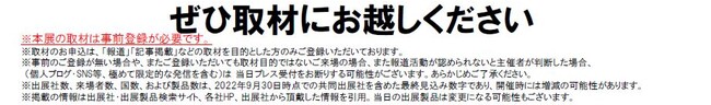 ※記載の出展社数・製品数・国数は、同時開催展を含む2022年9月30日時点での最終見込み数字であり、開催時には増減の可能性があります。