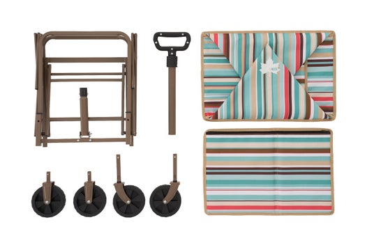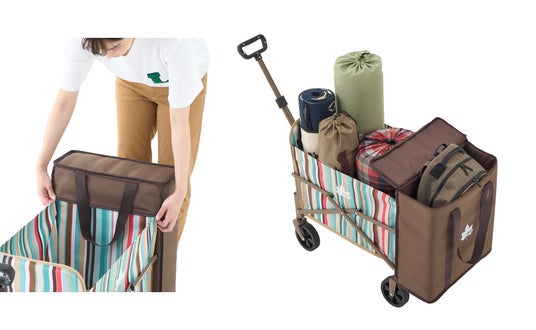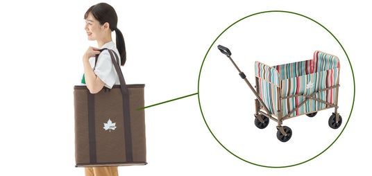 バッグに入れてスマートな持ち運びが可能で、収納・組立てラクラクなキャリーカート「丸洗いバッグインキャリーカート(ブルーストライプ)」をアウトドアシーンでぜひご活用ください。
