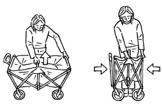 また、生地は本体から取り外して丸洗いできるので、汚れを気にせず使用できます。タイヤやハンドルの着脱も可能なので、コンパクト収納はもちろん、アウトドアで汚れても隅々まで簡単にお手入れができ、常に清潔な状態をキープできます。