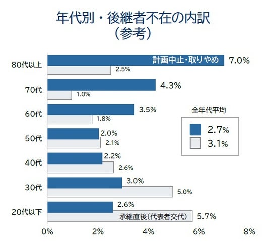 - 「50代・60代」で後継者不在率が悪化 「80代以上」は全年代で最低