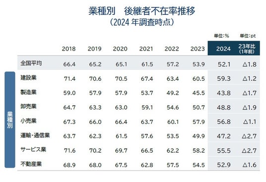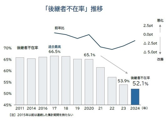 2024年の後継者不在率は52.1% 調査開始以降で最低値も、改善ペースは鈍化傾向