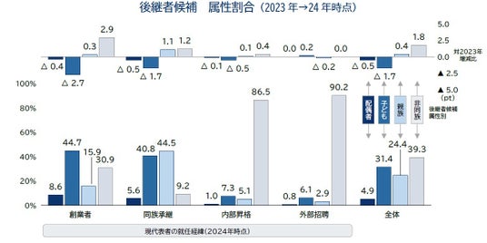 後継者候補属性:「親族」「非同族」の割合が拡大 「ファミリー」承継は低下傾向続く
