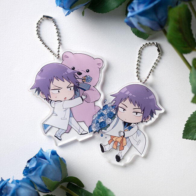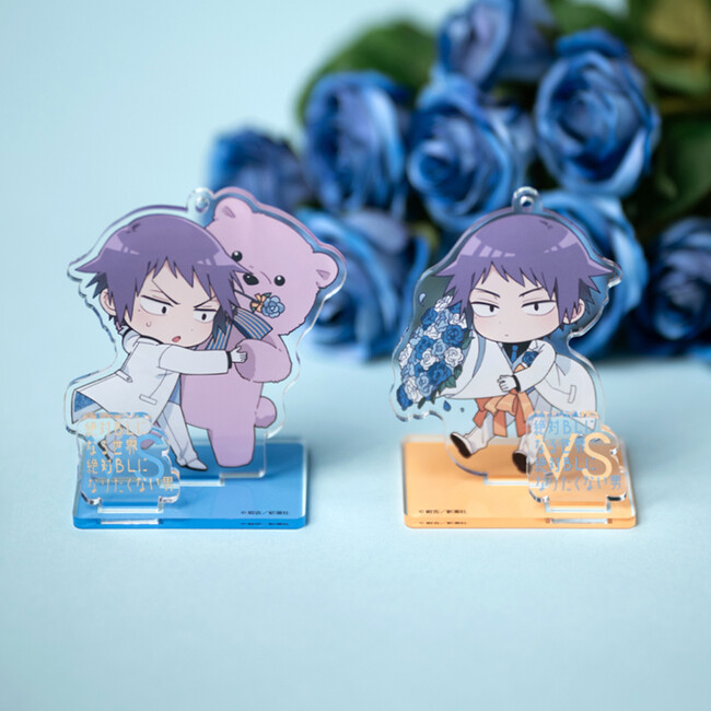 新潮社のwebコミックサイト「くらげバンチ」にて好評連載中の『絶対BLになる世界VS絶対BLになりたくない男』から、紺吉先生描き下ろしイラストを使用したアクリルスタンドキーホルダーが登場します。