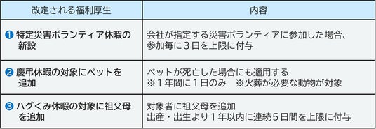 株式会社イオンファンタジー(本社:千葉市美浜区 代表取締役社長:藤原徳也 以下、当社)は、「すべてのファンタジーピープル(イオンファンタジーで働く人々)が仕事もあそびも夢中になれる会社」の実現を目指して6月21日付で福利厚生制度を改定いたしました。本改定では、『特定災害ボランティア休暇』の新設、慶弔休暇の対象を家族である『ペット』にまで拡大、孫の育児に参加したい祖父母を支援するため『ハグくみ休暇』対象者に祖父母を追加するといった有給休暇の拡充となります。